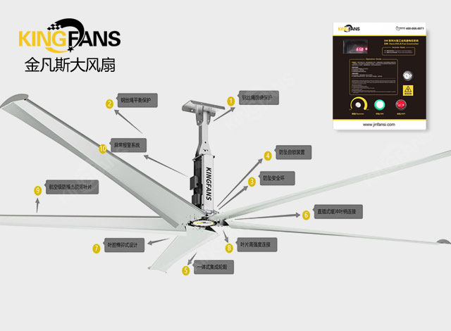 安全技術(shù):金凡斯特有十重安全保障,多項專利技術(shù),保證工業(yè)大風(fēng)扇的安全運行,風(fēng)扇整體、各部件不會發(fā)生松動、斷裂或墜落,從根本上保護(hù)用戶使用安全。
